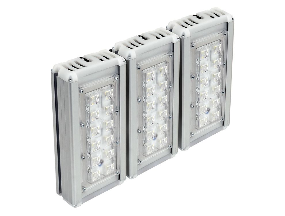 Светодиодные прожекторы со вторичной оптикой и различными углами рассеивания. Применяются при большой высоте подвеса, для освещения больших территорий и в местах, где требуется узкая кривая силы света (КСС).