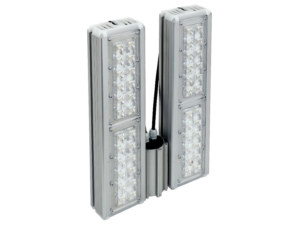 Светодиодные прожекторы со вторичной оптикой и различными углами рассеивания. Применяются при большой высоте подвеса, для освещения больших территорий и в местах, где требуется узкая кривая силы света (КСС).