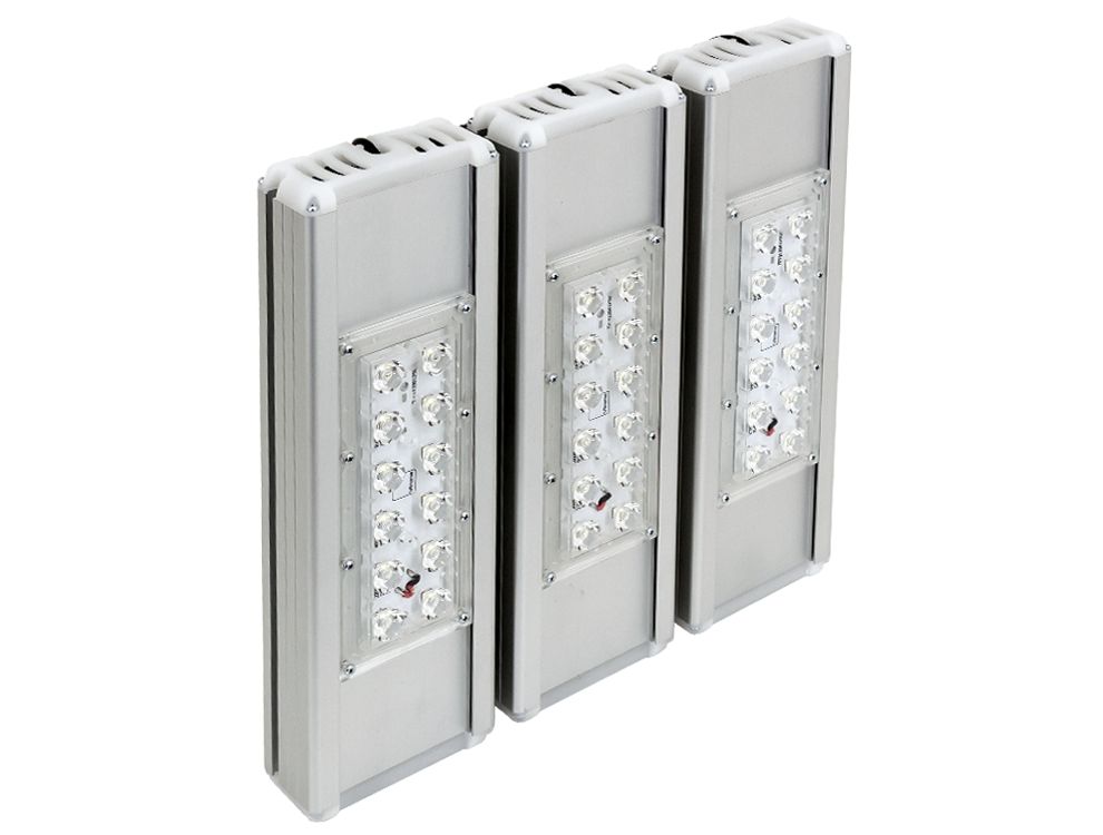 Светодиодные прожекторы со вторичной оптикой и различными углами рассеивания. Применяются при большой высоте подвеса, для освещения больших территорий и в местах, где требуется узкая кривая силы света (КСС).